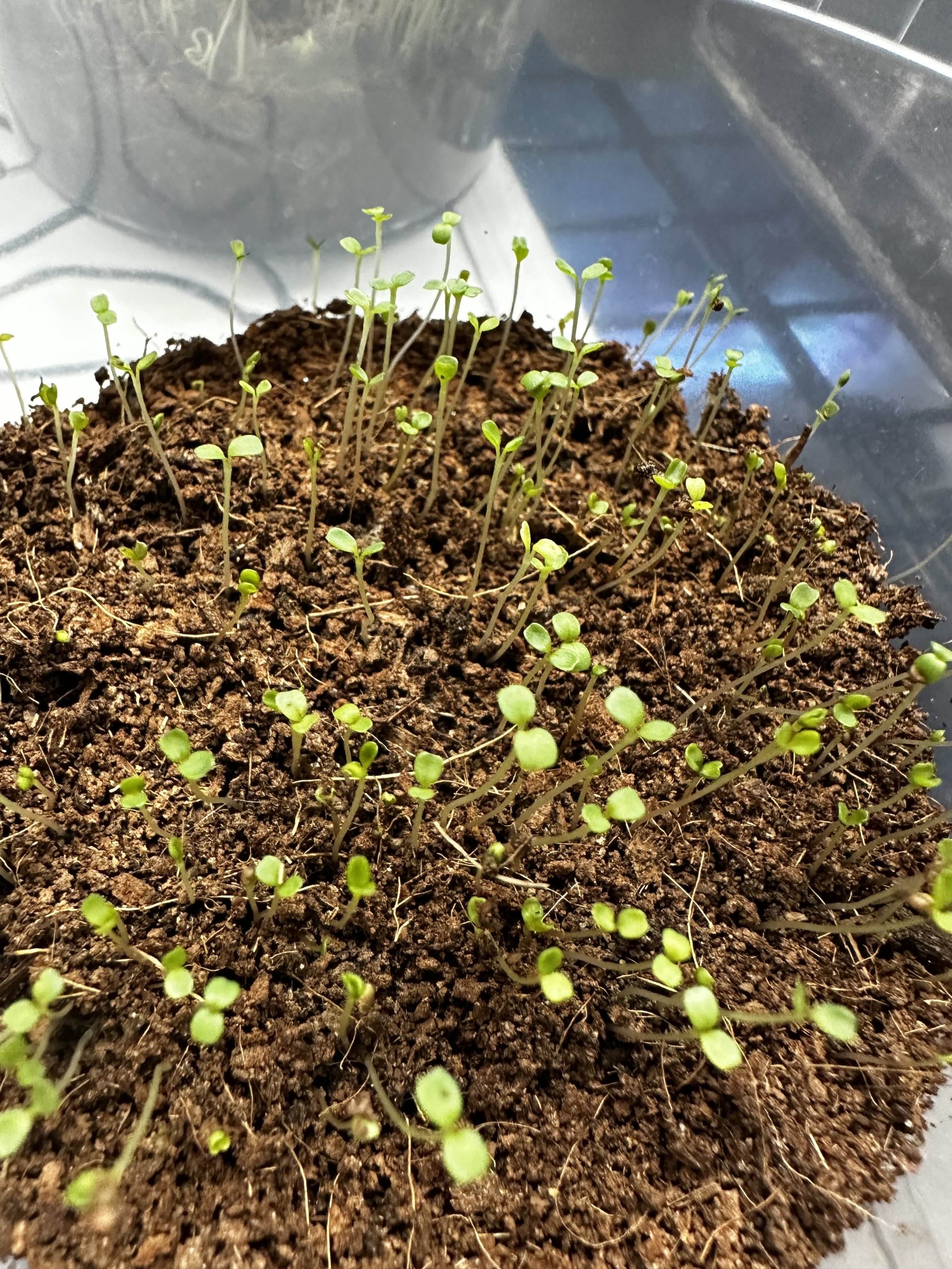 1 seeds in dirt, 2 wet seeds in dirt, 3germinated, 4 sprouted, 5 young, 6 mature